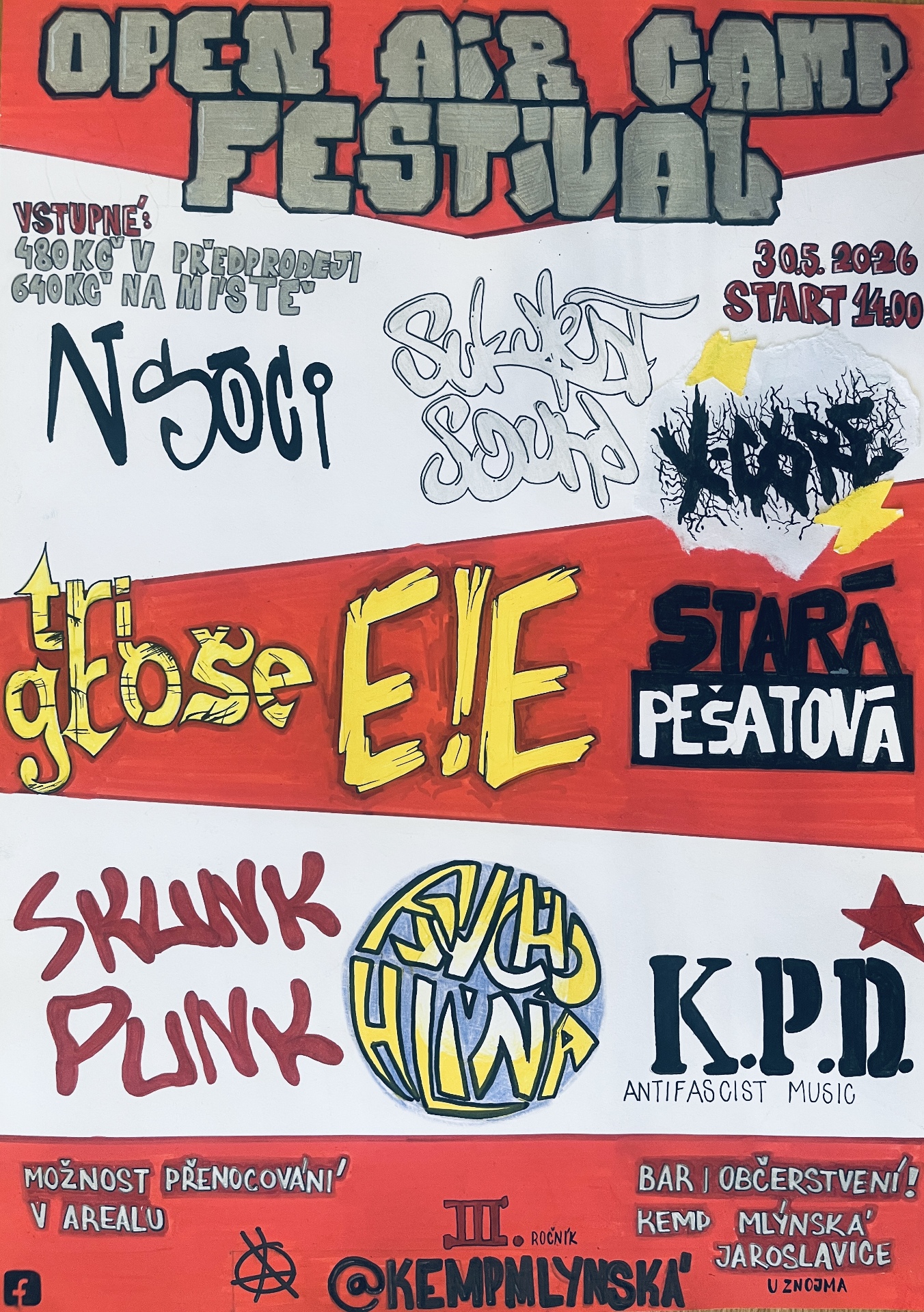 Přijdte si poslechnout spoustu výborných kapel a užít si spolu pěknou sobotu. Jídlo, pití i program pro děti bude zajištěn (skákací hrad, malování na obličej, tetování atd.). Děti do 12 let mají vstup zdarma.